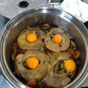 2の車麩の穴に卵を入れて、卵が固まったら出来あがり。
