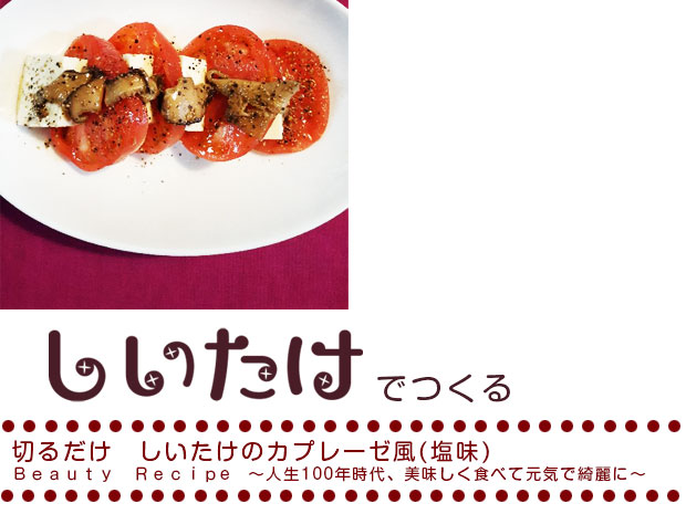 23.切るだけ しいたけのカプレーゼ風(塩味)Beauty Recipe ~人生100年時代、美味しく食べて元気で綺麗に~   加藤さん考案